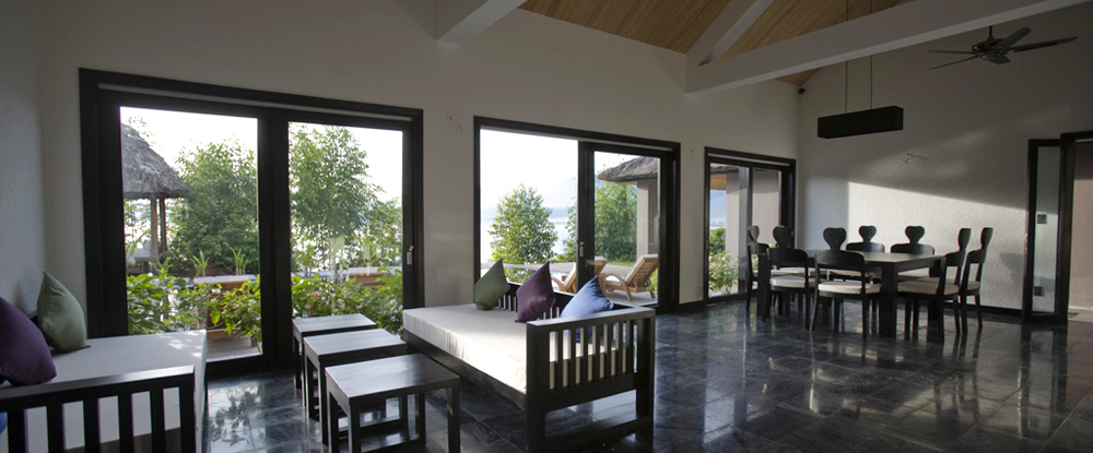 Pool family house: Elegantly designed with a focus on natural materials. each house consists of 2 bedrooms separated by a kitchenette, and has a private pool, private sundeck, private sauna, steambath, gym, living room and a garden looking over the lagoon, providing maximum privacy for guests