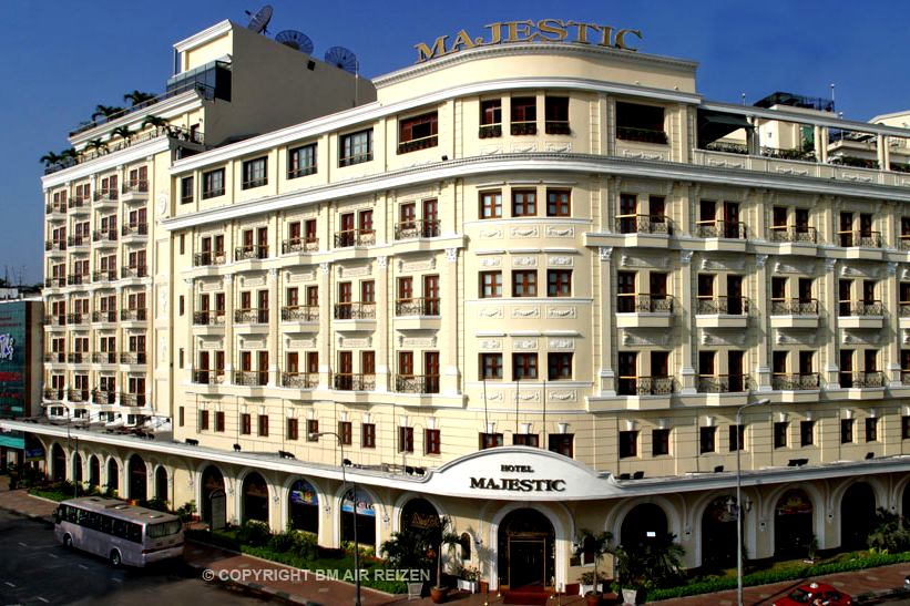 Since 1925, guests at the Majestic have enjoyed the view of the Saigon River and its central location in the heart of the city. The hotel embodies old world charm, impeccable elegance and the classic French tradition of original colonial architecture. Luxury is achieved through attention to detail, complete comfort and courteous unobtrusive service. The hotel offers 175 rooms and suites, as well as luxury facilities such as a business centre, swimming pool, fitness centre, conference rooms, stylish restaurants and bars. The hotels just has been ranked as 5 star hotel in early 2007 .